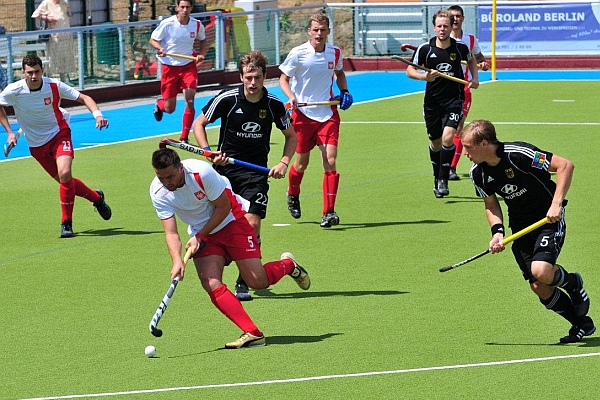 Nur eine Minute später setzte Hablawetz seinen U21-Weltmeisterkollegen Tobias Matania mit einem 25-Meter-Pass in den Kreis mustergültig in Szene, und der Mülheimer traf nach kurzer Ballannahme mit dem zweiten Kontakt zum 3:1. Doch die guten polnischen Ecken zeigten heute Wirkung. In der 30. Minute verkürzten die Polen – inzwischen wieder komplett – zum 3:2. Und nur eine Minute vor Ende der Spielzeit war dann auch die siebte Ecke der Polen im Ziel. In der zweiten Halbzeit verschoss der ehemalige Großflottbeker Dariusz Rachwalski im polnischen Team zudem einen Siebenmeter.