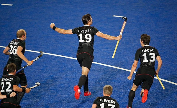 01.08.2012 - Deutschlands Hockeyherren haben ihre zweite Vorrundenaufgabe bei den Olympischen Spielen in London erfüllt! Gegen die im Auftaktspiel gegen Neuseeland (2:0) bereits starken Koreaner reichte ein Eckentor von Christopher Zeller kurz vor der Pause zu einem zwar knappen, aber absolut verdienten 1:0-Sieg. Die DHB-Auswahl eroberte damit Platz zwei in der Gruppe hinter den heute ebenfalls erfolgreichen, punktgleichen Niederländern (3:1 gegen Belgien). Am Freitag trifft die Mannschaft nun auf Indien, das nach seinem heutigen 1:3 gegen Neuseeland bislang ohne Punkte blieb.