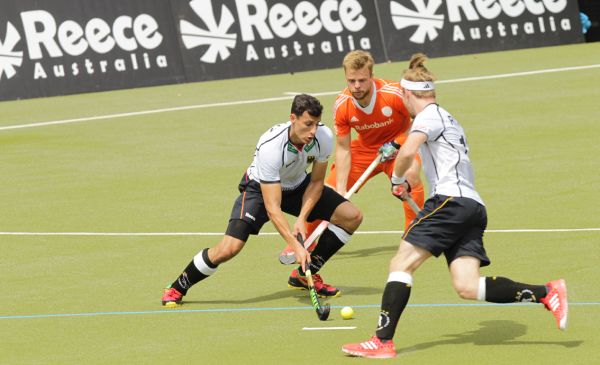 Die Niederlande sahen sich vor ernsthafte Probleme gestellt, bekamen keinen Zugriff auf das Spiel. Der Europameister kam im ersten Viertel nicht einmal wirklich gefährlich vor das deutsche Tor. Die Defensive um Kapitän Moritz Fürste und Martin Häner agierte ungemein aufmerksam, leitete schnell Gegenangriffe ein. So suchte Christopher Rühr zum Beispiel den durchgestartete Florian Fuchs, aber Oranje-Keeper Jaap Stockmann klärte den etwas zu lang geratenen Ball am Kreisrand in Golfer-Manier (14.). Nach der ersten Viertelpause wurde es auf dem Platz etwas ausgeglichener, doch das deutsche Team hatte das Geschehen weiter gut im Griff und kam immer wieder gefährlich vor das niederländische Tor.